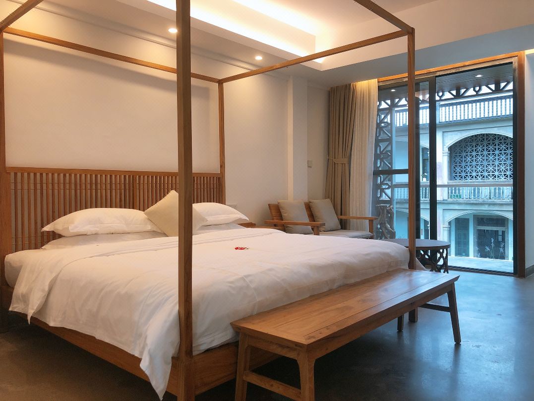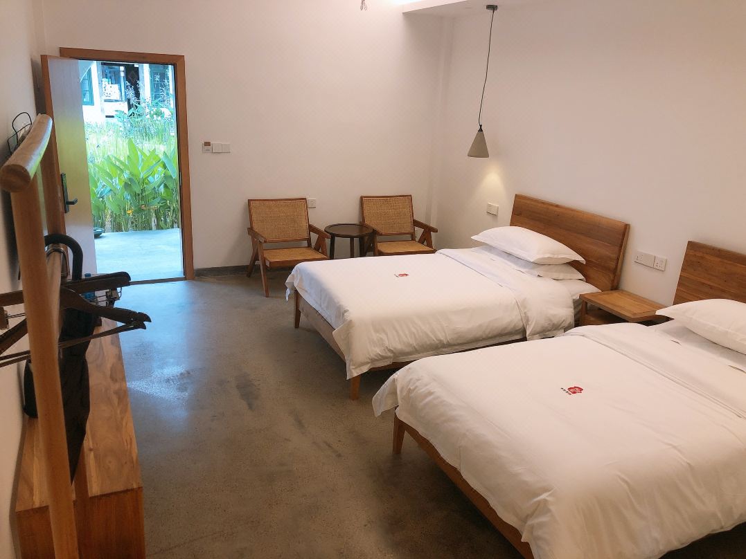 民宿的房間布置很精致雅觀,綠色窗臺顯得洋氣,桌、椅、床、凳充滿了復(fù)古的氣息。