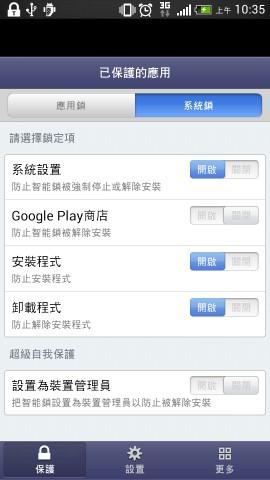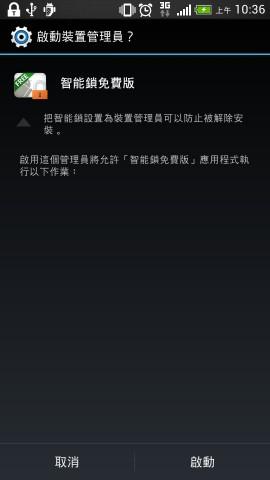 系統里可以選擇講智能鎖設定成拒絕移除的程式,也可以將智能鎖設置成為裝置管理員,讓智能鎖有更高的權限,也可以避免被有心人移除。